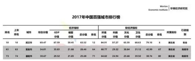 “2017年中國百強(qiáng)城市排行榜”在上海發(fā)布,含金量最高的榜單中,湖北方面,武漢、宜昌、襄陽三地繼續(xù)榜上有名,排名穩(wěn)定。武漢穩(wěn)定持續(xù)三年進(jìn)入榜單前10,武漢固定資產(chǎn)投資全國第3!